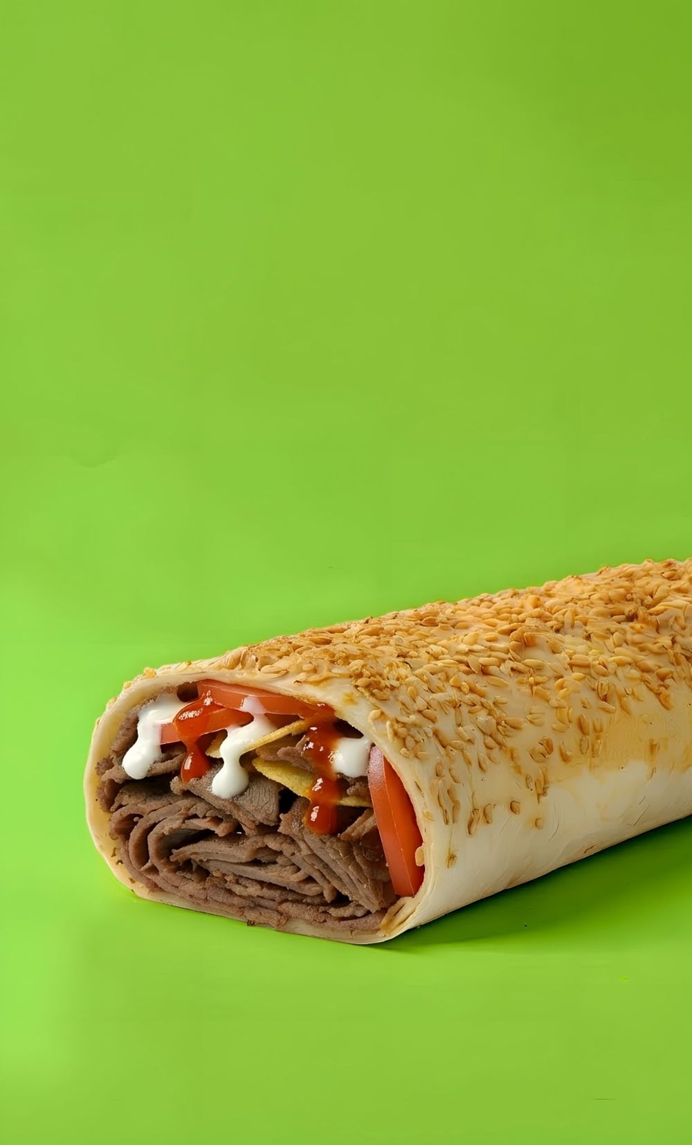 Тандырда пісірілген хош иісті лаваш, шырынды сиыр еті, балғын көкөністер, қою қызанақ тұздығы және нәзік майонез. Оттың дәмі сіңген ерекше үйлесім — шынайы шығыс дәмі! Ароматный лаваш из тандыра, сочная говядина, свежие овощи, насыщенный томатный соус и нежный майонез. Лёгкий дымный акцент и богатый вкус — настоящее восточное удовольствие!